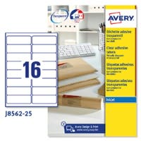 Etichette adesive J8560 - in PE - inkjet - permanenti - 63,5 x 38,1 mm - 21 et/fg - 25 fogli - trasparente - Avery